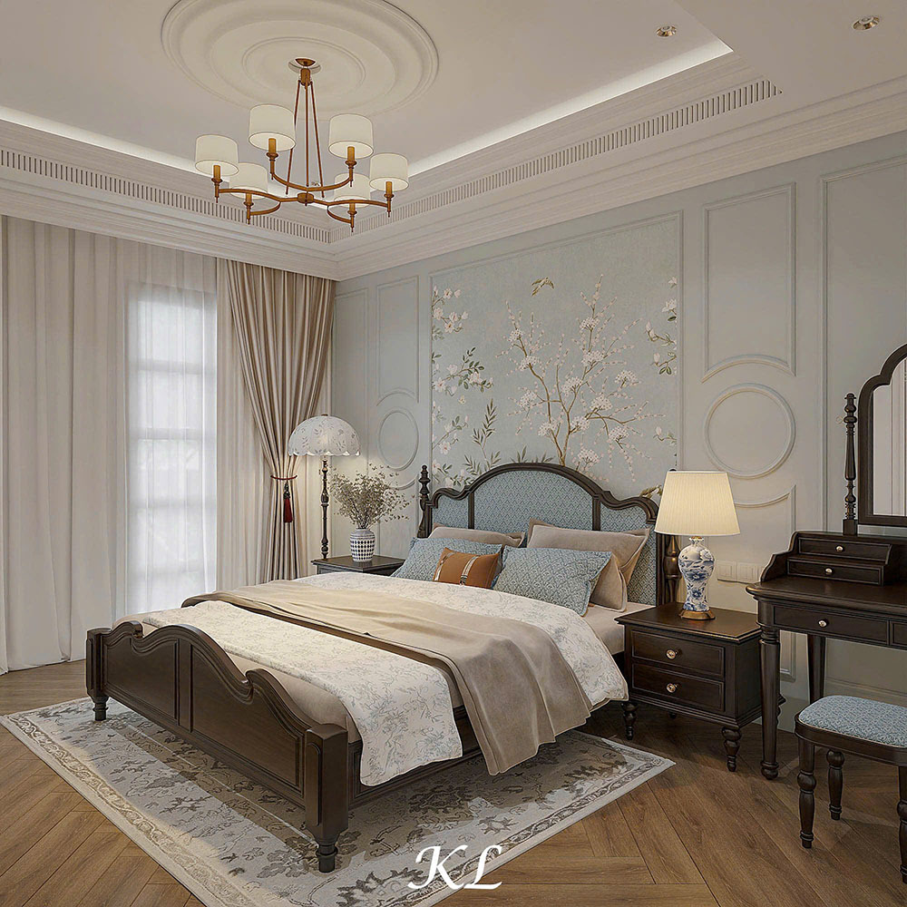 Hệ thống đèn chùm trần phong cách cổ điển kết hợp cùng đèn ngủ hai bên giường