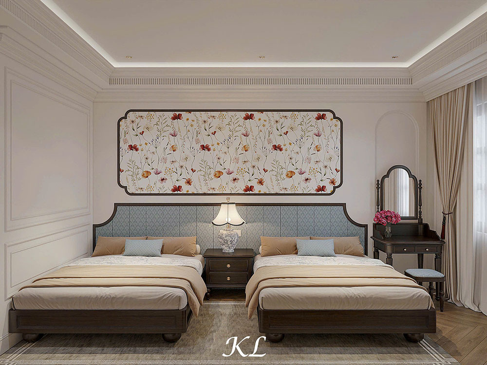 rộng rãi, tiện nghi và ấm cúng. Phong cách tân cổ điển sang trọng kết hợp